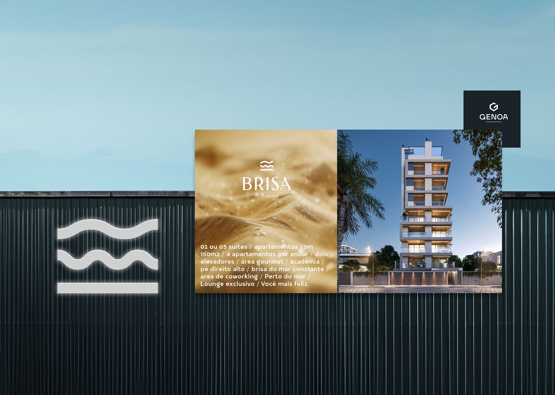 Brisa é um empreendimento da Genoa localizado em Barra Velha, onde o mar, a areia e o vento se encontram para criar um cenário de tranquilidade e bem-estar. O desafio foi traduzir a leveza e a sutileza da brisa marítima em uma identidade visual sofisticada e acolhedora.